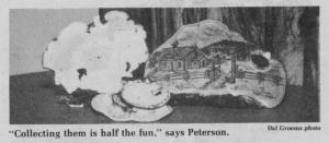 Many people paint on mushrooms, but Mrs. Peterson has not found anyone else who actually carves into the mushroom. She and her husband, Aaron, and their two children, April and Scott, usually go together on mushroom hunts.