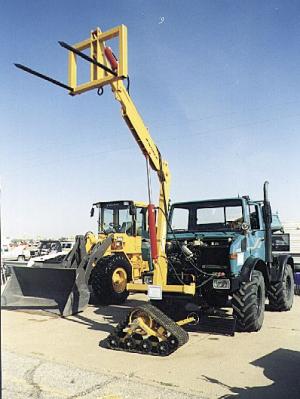 A couple years ago you did a story on our 4-WD Unimog (Vol. 21, No. 3). Made in Germany by Mercedes Benz, the Unimog has a 3-person cab and a cargo platform that doubles as a side-tilt dump box. It's equipped with front and rear 3-pt., pto, and remote hydraulic outlets as well as a rear hitch. It can do the work of both a truck and a tractor which is why we think it's the most versatile tractor in the world and has a great future in North America. We now offer models ranging from 100 to 240 hp. At recent farm equipment shows we've equipped our 1600 model with a front-mounted Ag Krane which works like a forklift and also works great for moving round bales. We can equip our smaller models with Matt Tracks for improved traction, and in the future we may offer Gilbert & Riplo tracks on our higher horsepower models. (Kelvin Kurkowski, Uniquip Ag, Rt. 1, Box 403, Grant, Neb. 69140 ph 308 352-4676 or 4098; fax 4031)