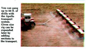 Now, thanks to the Apollo Hydraulic Drill transport from Andre Industries, Bismarck, N.Dak., one man can move up to 60 ft. of different-size grain drills from field to road position, or vice versa, in less than 5 minutes, and without leaving the seat of his tractor.