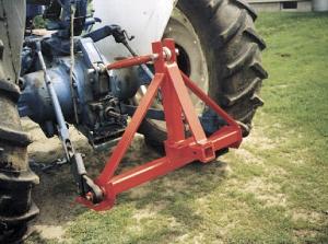 I took an old receiver-type hitch off an old pickup at a junkyard and built a 3-pt. hitch around it. I welded a 15-in. piece of tubing on top and braced it up real well with 1/2-in. flat stock. I bought a pair of 1 1/8 in. threaded pins for the drawbar pins. I cut a hole in the bottom so if I ever break a pin I could change it. It gave me a rugged hitch that will last a lifetime. I can insert a variety of hitches. It will even take a pintle hook. (Basil L. Powers, General Delivery, Stratton, Maine 04982 ph 207 246-3092)