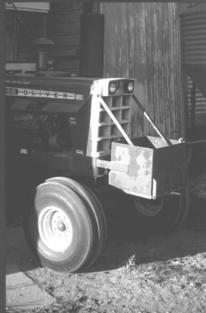 "The bottom side of the box is hinged on the back side. All I do to dump the rocks out is pull a lever mounted on front of the box," says Gogerty. Gogerty bought the tractor already equipped with the box. It measures 2 ft. square and is bolted to the front of the tractor at two different places. "It's as handy for carrying tools as it is for hauling rocks," notes Gogerty.