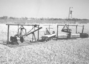 "I came up with what I call an ćequipment rail'. Each implement is suspended by chain from a metal frame, making it easy to back up close and hook up in seconds. When the implements are swinging from chains, it's easy to line them up with no lifting or prying.