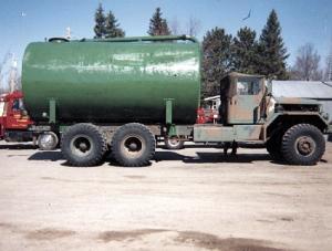 We recently completed a project that may be of interest to your readers. We built a liquid manure tank using a 1960 Metro Military 5-ton "bridge" truck with a 6-cyl. gas engine. We put a 5,000 gal. tank on it with a high-volume pump. The pump puts out 1,200 to 1,500 gpm through a 6-in. discharge to the spread nozzle and sprays a 180-degree pattern that is 30 to 40 ft. wide.