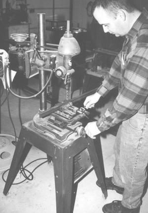 Tim Hays, Decatur, Ill.: For precise drilling, Tim salvaged a cross slide from a lathe and bolted it to the base of a drill press. The cross slide has its own small vise for holding metal parts precisely. Then, using left and right cranks, you can get absolute accuracy when drilling.
