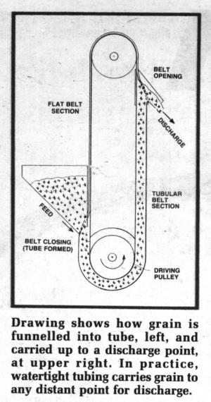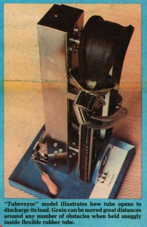 Dubbed the "Tubeveyor", the system uses what is essentially a split rubber hose to handle grain and other flowable materials. Inventor Andy Karpisek, a successful manufacturer of a variety of industrial products, says the Tubeveyor works like a rolled-up conveyor belt.