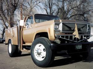 The rig is equipped with the pickup's original cab guard and has a stainless steel muffler on one side. An extra step was added onto each side in order to make it easier to climb up into the cab.    The last step was to add six coats of metallic gold paint - the only job that Swets didn't do himself.