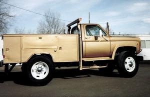 The giant 3-ton pickup stands 7 ft. 10 in. high at the top of the cab, yet it's only 6 in. longer than a regular 3/4-ton pickup. It's powered by the bus's original 366 cu. in., 250 hp gas engine and 5-speed transmission.