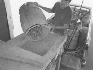 "There's a funnel-shaped hopper at the top of the cylinder which feeds the potatoes to the knives. A barrel underneath the knives and hopper collects the cut up potatoes," Jason explains. "It works really well and took only about two days to build. The materials, which included rough lumber, plywood, chipper knives and the motor, totaled about $400."