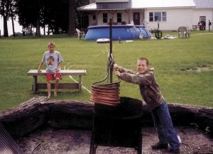We have a small, soft-sided swimming pool in our yard. My wife enjoys the pool but was reluctant to use it because the water was rarely warm enough. I remedied the problem by building a wood-fired heat exchanger. I wrapped 50 ft. of soft copper tubing around a chunk of wood to make the coil and left about 6 ft. of each end straight. The coil sets in a half barrel of water on top of a wood fire. Water is circulated to and from the pool by a submersible sump pump through a garden hose. I can easily raise the pool's water temperature 15 to 20 degrees in one day. This setup didn't really cost anything at all because I already had most of the components on hand. (Todd Hershey, 5076 Burr Oak Road, Freeport, Ill. 61032 ph 815 233-4830 or 815 541-8405)