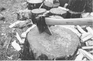 Once you get used to it, Harrison says you can chop a log into 4 pieces with a single blow.
