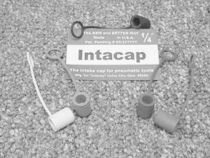 Robert Boone, Intacap, 207 East Main St., Union City, Ohio 45390 ph 800 333-8718; E-mail: Intacap@who.rr.com: "Our company recently introduced an intake cap for pneumatic tools that fits tightly over the tool's intake coupler. It protects the inner workings of the pneumatic tool from dirt and grime when a tool is not in use. It's molded from durable and flexible Santoprene material for long life. The cap has a tether to secure it to the tool when it's in use in order to prevent loss of the cap.