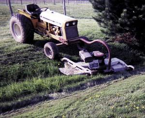 Thank you for the story on my gooseneck-mounted mower deck (Vol. 26, No. 3). It consists of a 60-in. mower deck that I mounted on front of my 1981 Cub Lo Boy tractor. Works great for mowing fence corners and ditches and also eliminates a lot of hand trimming around trees and buildings. The front of the deck is equipped with a home-built gooseneck ball hitch that allows the mower to swivel 360 degrees when turning or backing up.