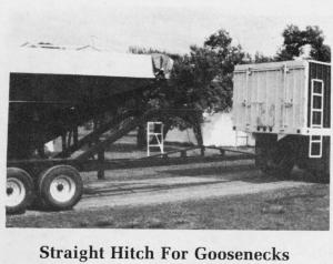 He built the tongue from 4-in. square tubing. It runs out from the trailer frame and past the gooseneck hitch at the sameheight as the truck hitch. The trailer hitch is reinforced with angle iron bracing. Anderson notes, by changing the hitch height, the trailer could also be hooked behind the tractors.