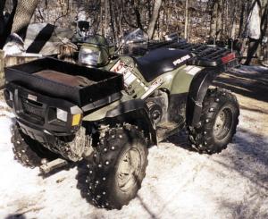 I also put studs on a Bobcat skid loader and could hardly believe the improvement. It's easier to use studs than tire chains, because it's hard to get chains tight and fitted right. One limitation with studs is that you have to drive cautiously on roads to keep from damaging the pavement. Also, I don't recommend allowing kids to drive an ATV fitted with studs because if they peel out, it tends to throw the studs off or wear them out prematurely.