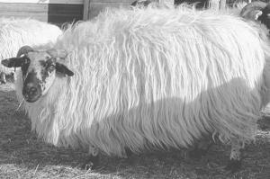 The Scottish Blackface is raised here mainly for meat, but the wool is good for carpets and rugs. In the U.K., it is valuable for making into "tweed" fabric. The meat has a nice, mellow taste.
