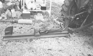 The rail serves as the splitter's main beam and is turned upside down. A single blade with spreader fins welds in place at the far end of the rail, and a vertical metal bracket that attaches to the 3-pt. is welded to the other end. The bracket supports a 4 by 24-in. hydraulic cylinder attached to a 2-in. ram, as well as a control valve. The cylinder operates off tractor hydraulics.