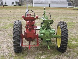The Hybrid is quite a conversation piece at antique tractor shows, says Evans. "Whenever I go to an International Harvester show, the people there say it's a shame that I put the two together. Deere people say the same thing at their shows. I drive the IH tractor at IH shows and pull the Deere tractor with me, and I do the opposite at Deere shows."