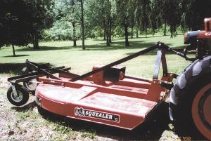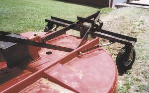 "It's a simple idea but it helps keep my mower from gouging the ground whenever I mow close to the ground," says Frank Donk, Clyde, N.Y., who added a pair of stabilizer wheels on back of his 6-ft., 3-pt. mounted Bush Hog.