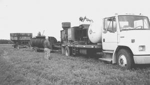 This truck-mounted grain roaster is designed to roast grain to feed livestock. It's owned by custom operator Ken Ressler of Orville, Ohio, and operated by Maurice Steiner, who drives it to farms within a 60-mile radius and is on the road six days a week, all year long.