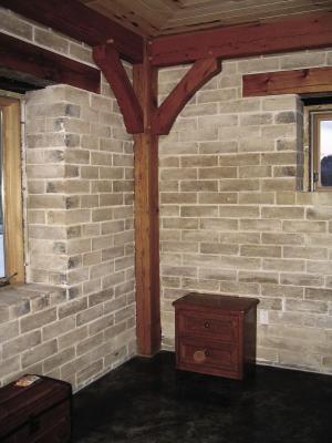 Johnson adds that people also like them for the design capabilities. It's easy to build arches and curves, and they can be left exposed like a fired-brick wall or plastered with a wide variety of colors and looks.