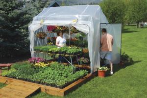Prices range from $449 for the SouthSider Jr. to $995 for the GardenPro Greenhouse. Center shelving units and replacement covers are options with each unit. Solid vinyl covers are also available for all but the SouthSider, turning the greenhouses into year round storage. Wooden bases required for the larger models are not included in the price.