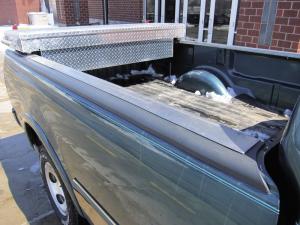 “Your toolbox moves easily on the rollers toward the back of the pickup bed. The rails are positioned so the toolbox clears the wheel wells,” says Miller. “It’s still in the prototype stage and I don’t have anything for sale yet. I think my idea would work on any toolbox as long as it clears the wheel wells.”