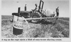 Developed by Truman Massee and Harold Waggoner at the USDA Snake River Conservation Research Center in Kimberly, Idaho, the marker uses shaving cream to spot mark the sprayer's return pass.