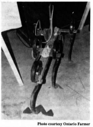Nothing's more frustrating than watching big weeds with tough stalks slip around cultivator sweeps without getting cut off. An Ontario farmer-inventor says he solved the problem by attaching a sickle section to either side of the last sweep on each cultivator gang.