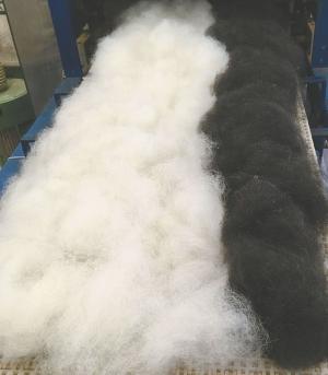 The thicker hairs are run through one more time to salvage more of the fiber. (Even the coarsest fiber is saved and used to make rug yarn.)