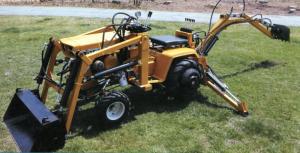 Ng built a front-end loader and a backhoe for a 1974 Harvester Cub Cadet model 149 in 2015. A reservoir built into one of the loader towers holds the oil. Power came from an 8 gpm pump connected to the engine’s front pto. Hoses from the pump ran into a two-spool directional control valve with a power-beyond port. That supplied oil to a 6-spool control valve. Ng’s system was set for a maximum of 1,000 psi.
