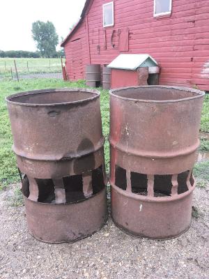 He removes the lid from a barrel and uses a torch to cut five 4 by 6-in. holes into one side, about 1 ft. from the bottom. “I cut a steel plate to size and place it against the barrel so I can draw lines for the holes. Then I cut them out,” says Neuberger.