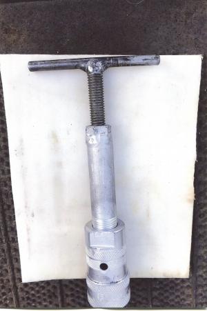 Bill Knutson, Centerville, S. Dak.: “I made this simple tool that makes releasing pressurized hydraulic couplers as easy as turning a T-handle. I removed the ball and spring from a coupler and screwed on a 4-in. long nipple, then welded a 1/2-in. nut to the other end of the nipple. I also drilled a 3/16-in. dia. hole in the coupler and welded a 1/2-in. threaded rod to a T-handle. Screwing the rod all the way into the nut pushes on the ball at the end of the hose and releases the pressure. Works great.”