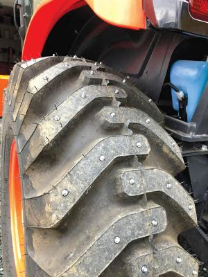 According to Schwartz, Grip Studs are a great alternative to tire chains on some kinds of equipment, such as the newer tractors on the market being used for snow removal. “Many of the modern models lack clearance around their tires to effectively use tire chains. Grip Studs protrude from the tire less than 1/4 in.