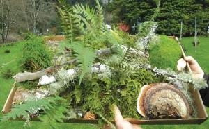 “Forest Droppings are all the things you see on the forest floor,” says Zweifel. “We buy tree mushrooms, mosses, rocks, little ferns and more. The materials change from season to season.”