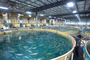 Massachusetts-based AquaBounty maintains 2 similar, land-based facilities on Prince Edward Island in Canada. A 250-metric ton production unit and hatchery are located at Rollo Bay. Its first harvest of GMO salmon is expected in early 2021.