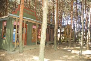 Because the buildings are small and not on permanent foundations, Zell calls the structures “lawn ornaments that look like buildings.” They are tucked in gaps in the pine trees the Zells planted in 1980. The structures were inexpensive to build since materials are recycled, donated or purchased used.