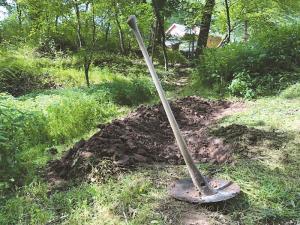 “My disk hoe looks somewhat like a pick but the handle is a lot longer and you swing it back and forth. I came up with the idea years ago to backfill soil after pouring a concrete basement,” says Taylor. “To move the dirt I just pull backward on the hoe and also swing it back and forth. It works better than a shovel because I don’t have to do any lifting or pushing.”
