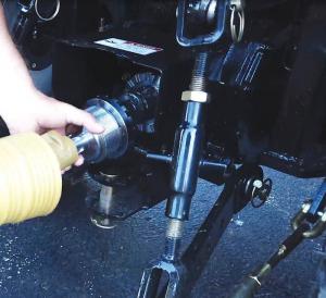 The patent pending PTO Connect adapter is designed to be used on all tractors with a 1 3/8-in., 6-spline pto shaft. It works by removing the radial splines and replacing them with axial splines, and it eliminates the need to rotate the pto shaft in order to line up the splines.