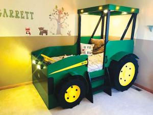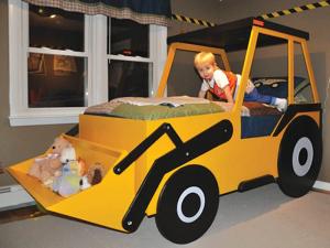 Some beds like the John Deere bed by Gary Vidlock, of ErpitiLLC, and the front end loader bed made by Glen Sherwin, of Plans4Wood, include side rails or walls to provide security for toddlers transitioning from cribs to “big kid” beds.