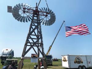 “I’ve known about this 40-ft. tall windmill for quite a few years and always thought it would make a nice addition to our village,” Bauer says. “Getting it here was a real challenge. We had to remove the 20-ft. diameter finned steel wheels, the gearbox, and a large vane without damaging them. Then we dismantled the base piece by piece.”