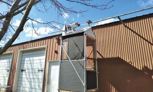 Altenweg used a discarded ice fishing house frame made from 1 1/2-in. wide, 12-ga. Unistrut hangers. It’s covered in see-through vinyl panels and a roof of tin. The only wood is old decking for a floor.