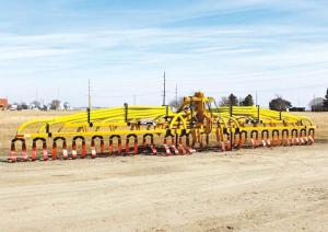 Bazooka Farmstar has upgraded its original Dribble Bar to the Dribble Bar 2, adding greater precision, durability, and efficiency. The 3-pt. hitch-equipped, 44-ft. wide spreader features a heavier frame, hydraulic mainlines, and a unique discharge valve. A heavy-duty 3-in. Bumblebee hose delivers the liquid manure to 44 dribble lines and 22 ports holding Y-shaped drop tubes spaced 12-in. apart. Hydraulic rear folding wings for road transport come standard.