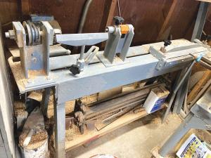 He also made the tool rest. It’s a 6-in. length of left-over grader blade tapered at each end. He mounted it to a shaft on a slotted length of steel that bolts to the bed. It’s easily adjusted up or down and in or out.
