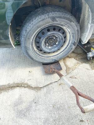 John Lubinski, Plainview, Minn.: “Using a small shovel to lift a tire into position when changing makes it much easier to move and get the tire back on, especially for us old guys.”