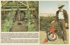 "The guidance system is easier to understand if you think of the furrowers and guide wheels working together to lay down a pair of railroad tracks parallel to the crop rows. The cultivator, riding on these rails, is self-guiding, steering itself with precision accuracy at much faster than normal speeds - even in newly emerged crops planted in narrow rows," explains Bezzerides.