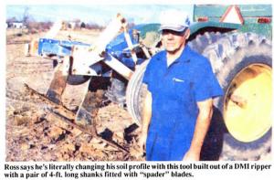 So he decided to build his own equipment, designing what he calls a "spader" out of a DMI ripper with a pair of 4-ft. long shanks fitted with "spades" made out of road grader blades mounted endwise and angled downward.