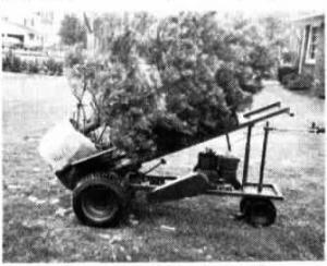 Landscape ball carts used to transport large trees from truck to planting sites FARM HOME Miscellaneous 15-2-33 Landscape ball carts are used to transport large trees from truck to planting sites through narrow gates and passage ways where large vehicles can't go. I invented this powered ball cart that can move up to 1,000 lb. trees easily, hauling them up steep grades and through 36-in. gates to planting sites. It's safer and easier to use and there's less chance of workers getting hurt or suffering a hernia. It's powered by a 7 hp. motor which belt-drives a 3-speed transaxle connected to rear wheels. It has a belt tightener hand clutch, brake and hand throttle. The tree basket tilts up to pick up a tree or put it in place. The cart has large flotation tires so it won't make deep ruts in the lawn even when the soil is wet and soft. I have built two models and would like to find a manufacturer. (Raymond Fager, 622 So. Holland-Sylvania Road, Toledo, Ohio 43615)