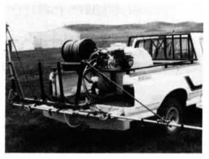 The pickup-mounted skid sprayer sells for $1,995. Trailer-mounted and ATV-mounted models are also available.