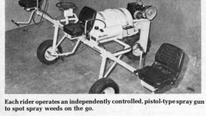 Each rider operates a spray gun which has its own independent 12-volt electric pump. The pump runs only when the trigger is pulled for spraying. Sells for $2,975.