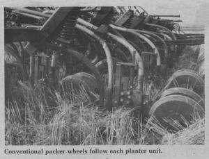 "It'll do anything a no-till drill can do and more," notes Handy. "We can deep band fertilizer and incorporate chemical at the same time. We can plant at any given depth and, because the chisel plow brings up moist ground from below, we can start crops under very dry conditions. It maintains precise depth control even on terraces or hills."